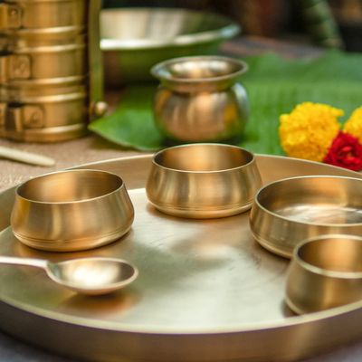 Brass, Bronze and Copper are considered sattvic metals that help balance the three doshas (Vata, Pitta, and Kapha), promoting overall well-being.